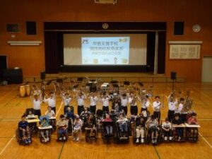 B高では、「関西高校吹奏楽部」との交流及び共同学習を9/17(水)に行いました。午前中は、関西高校さんの素敵な演奏やパフォーマンスに合わせて、一緒に踊ったり、手を叩いたりして、楽しい気持ちを表現する姿が見られました。午後からは、パラスポーツを楽しみました。高校生同士で、実りの多い充実した時間を共に過ごしました。