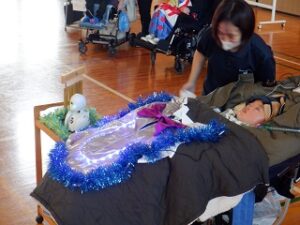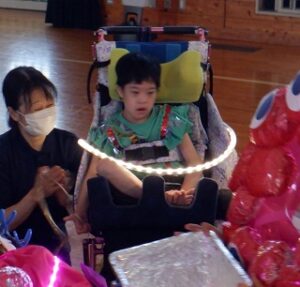 昭和チームは、好きなキャラクターのめんこをひっくり返したり、球を飛ばしたり等、遊びを紹介しました。「パラダイス銀河」「上を向いて歩こう」等、昭和のミュージックショーも行いました。