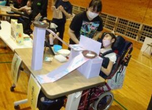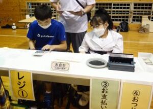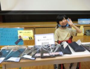 販売学習では、デニムバッグや箱ティッシュカバーなど、協力して心を込めて作った製品を販売しました。会計や商品紹介などの役割も責任を持って行い、お客様とのやりとりを楽しみながら、喜んでもらえることの達成感を味わうことができました。