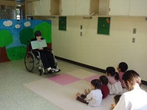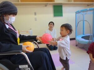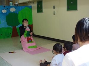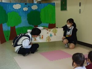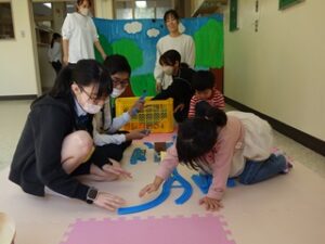 10月27日(月)に家庭科の授業で南岡山医療センターのたんぽぽ保育園に実習に行きました。実習では、園児と一緒に遊んだり、絵本の読み聞かせをしたりしました。はじめは少し緊張していた生徒も、子どもたちが笑顔で話しかけてくれるうちに、自然と笑顔になっていました。園児との関わりを通して、「言葉のかけ方」 「安全への配慮」 「一人ひとりのペースに合わせること」の大切さを学ぶことができました。園の先生方や子どもたちに感謝の気持ちをもって、これからの学習にもいかしていきます。