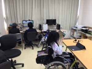 DXハイスクールの一環として、本校オリジナルのメタバース空間で作品展を開催し、美術作品やデジタルアートなど、日々の学習や余暇活動で制作した作品を展示しました。作品には、制作の思いや見どころなども添え、鑑賞者がより深く味わえる工夫をしています。2月17日(火)には、岡山県教育庁特別支援教育課および岡山県総合教育センターの指導主事の先生方にもご覧いただき、生徒が自ら作品の説明を行いました。自分の言葉で制作意図や工夫した点を伝える経験は、大きな学びと自信につながりました。今後もICTを活用し、学びの成果を社会へ発信する取組を進めていきます。