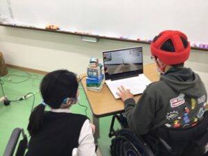 DXハイスクールの一環として、本校オリジナルのメタバース空間で作品展を開催し、美術作品やデジタルアートなど、日々の学習や余暇活動で制作した作品を展示しました。作品には、制作の思いや見どころなども添え、鑑賞者がより深く味わえる工夫をしています。2月17日(火)には、岡山県教育庁特別支援教育課および岡山県総合教育センターの指導主事の先生方にもご覧いただき、生徒が自ら作品の説明を行いました。自分の言葉で制作意図や工夫した点を伝える経験は、大きな学びと自信につながりました。今後もICTを活用し、学びの成果を社会へ発信する取組を進めていきます。
