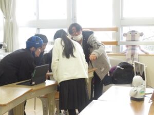 3月19日、A高の生徒がDXハイスクールで活用しているアバターロボットの操作方法を中学部の生徒に伝える授業を行いました。実際に操作するのは初めてということもあり、中学部の生徒達は興味津々の様子でした。
