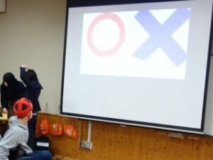 3月23日(月)修了式後に学部集会がありました。生徒会が司会を行い、教頭先生の話や皆勤賞の表彰がありました。最後に生徒会主催の〇×クイズを行うなど、楽しい時間を過ごしました。